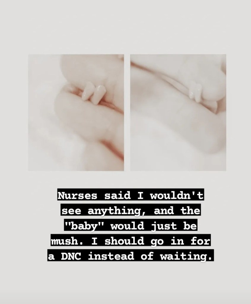 Choosing to deliver naturally was the longest few days of my life. The medicines weren’t working to kickstart my labour. The nurses/midwives seemed frustrated with me and kept telling me to just go in for a D&C — saying I wouldn’t see the baby anyway, that it would just be mush and blood but I was determined to deliver the baby and see what could of been.